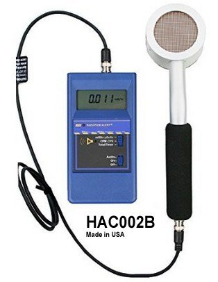 This model is a handheld radiation detector that detects potentially harmful ionizing alpha and beta particles, and gamma and x-ray radiation, with an external probe, and has a four-digit, LCD digital display of either millirem (mR) per hour and counts per minute (CPM); or microSieverts (μSv ) per hour and counts per second (CPS), and function indicators, and comes with a carrying case with probe cover. This radiation detector can detect low levels of the four main types of ionizing alpha and beta particles, and gamma rays and x-rays over automatic operational ranges. It is optimized to detect small changes (low levels) in radiation levels and to have high sensitivity to noble gases, and many common low energy radionuclides.