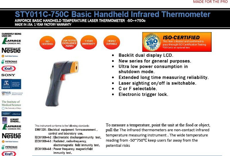 STY011C-AIRFORCE STY011C-750C Basic Handheld Infrared Thermometer