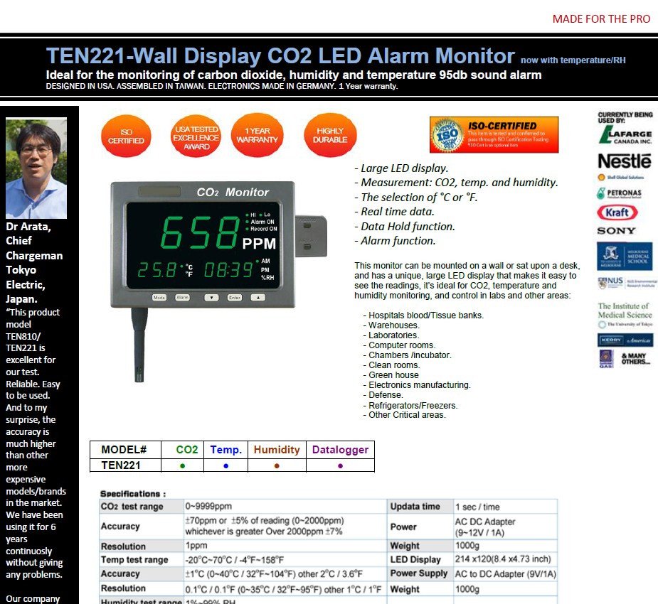 TEN221 LARGE LED DISPLAY (CO2,RH,TEMP) WITH BUILT-IN DATALOGGER